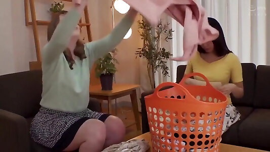 Japanese Mommy and Stepdaughter Share Sofa with Roomate and Plow Him
